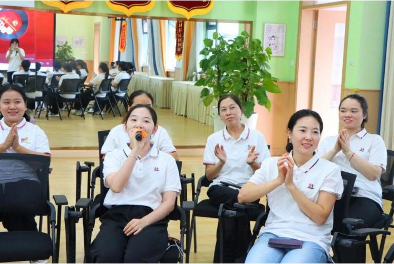 在“猜红歌”环节中,三江新区红星幼儿园全体教师分为四组,聆听经典红歌片段,抢答歌名。《没有共产党就没有新中国》《歌唱祖国》《红星照我去战斗》等旋律响起,老师们不仅回忆起革命年代的奋斗精神,更在歌声中感受到新时代教师的使命与担当。