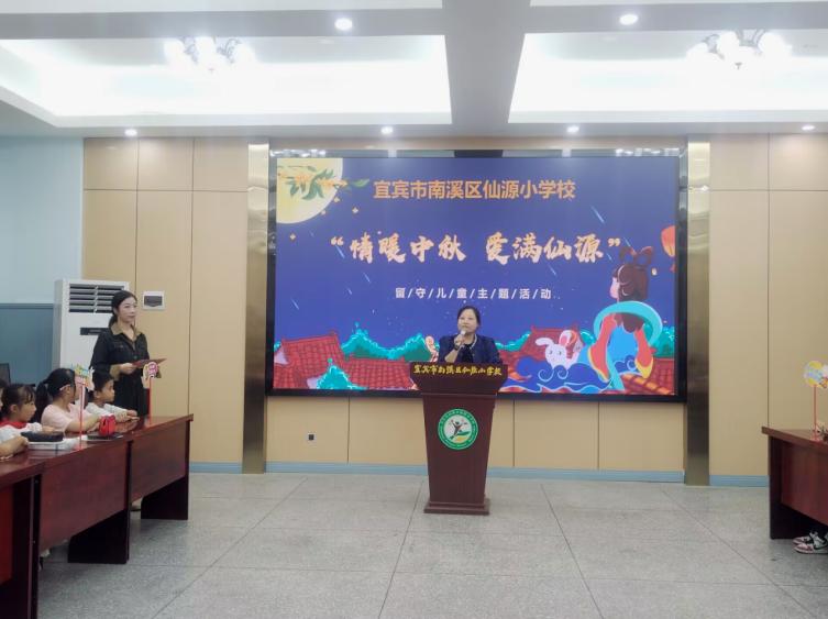 活动伊始,南溪区仙源小学校老师向同学们介绍了活动对留守儿童情感关怀、文化浸润的意义。接着,刘主席登台致辞,鼓励孩子们在活动中释放天性、收获快乐,让中秋的温情在校园里流淌。随后,中秋主题视频《中秋的由来》缓缓播放,一个个关于中秋的传说与习俗,为活动铺就了温馨的文化底色。