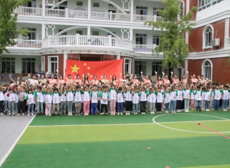 “红色是英雄的鲜血,大星是党,小星是人民……”教官温柔的讲解,让孩子们对国旗有了初步的认知。随后,一面4*6米的超大国旗在孩子们头顶缓缓拉开,孩子们伸出小手轻轻触摸国旗,指尖触碰的瞬间,是对祖国最纯真的敬意。他们与国旗、教官合影,挥舞着小国旗,稚嫩的脸庞上洋溢着自豪与骄傲,爱国的种子在心中深深扎根。
