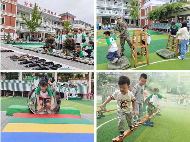 “军事大闯关”环节,成为孩子们释放活力的乐园。“小壁虎”匍匐前进时,他们趴在柔软的垫子上,用手肘和膝盖奋力向前爬,仿佛穿越重重“封锁区”;“勇敢者”独木桥挑战里,他们握紧小拳头,一步步平稳走过平衡木,战胜内心的胆怯;“大力士”投弹手们瞄准指定区域,用力投掷“安全手榴弹”;“小神枪手”们手持水弹枪,认真瞄准目标射击,每一次成功击中都伴随着孩子们的欢呼与雀跃,在游戏中不仅锻炼了身体的平衡性、协调性,更培养了勇敢、坚持的意志品质。