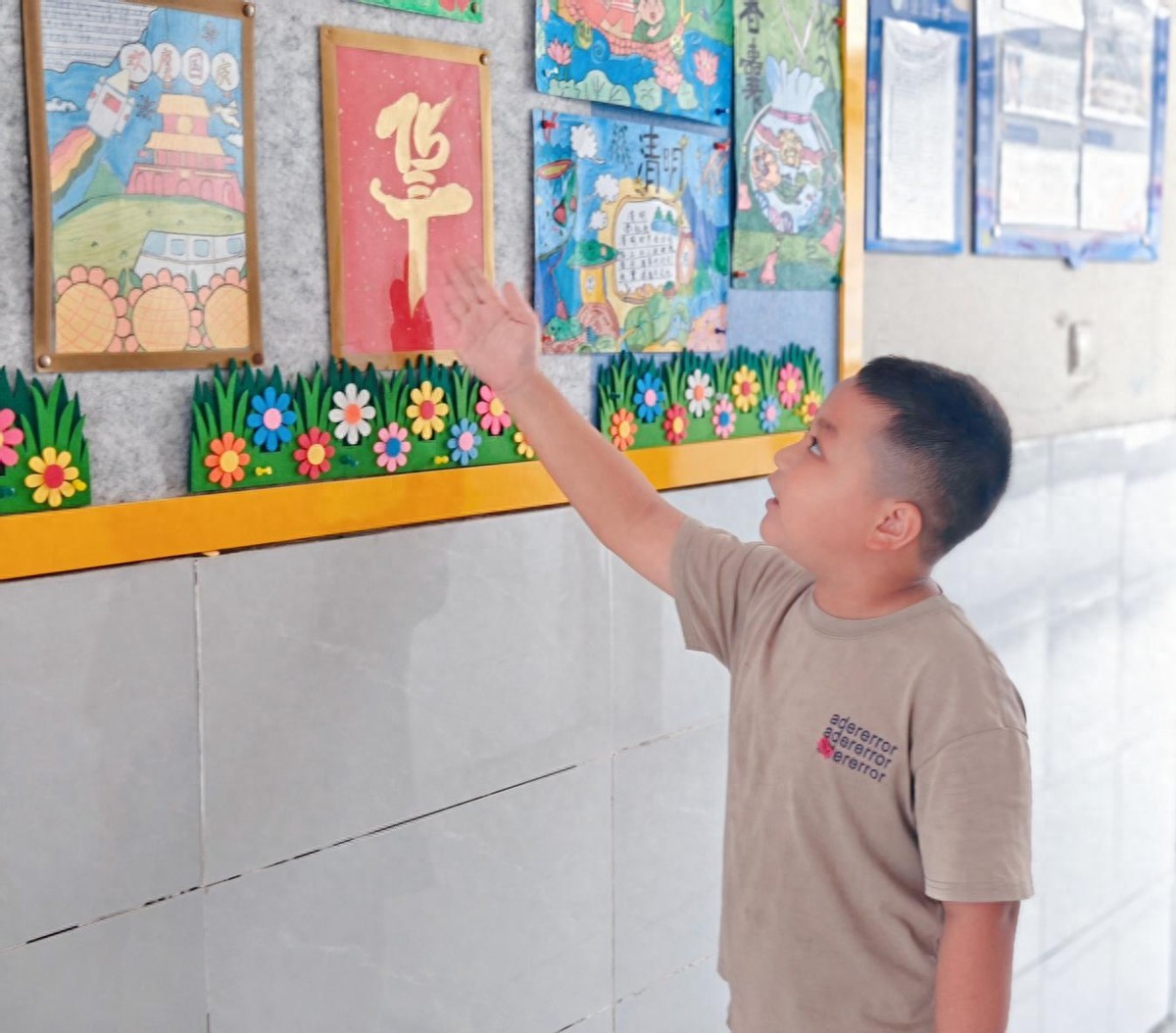 作品展示区充满童真童趣,水彩画、手工折纸、书法作品整齐陈列,每一件作品都是孩子们成长的鲜活印记。