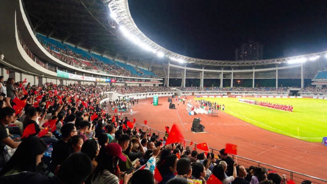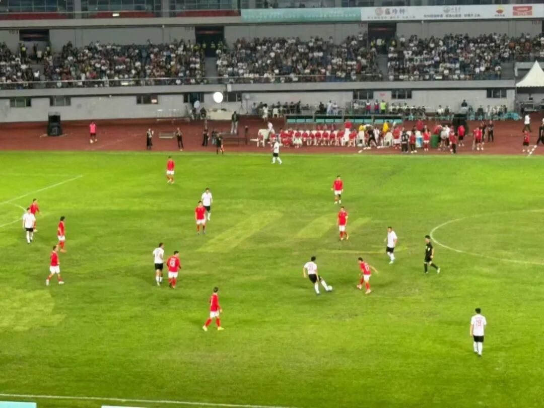 10月1日,香港精装明星足球赛·遂宁邀请赛在遂宁中心体育场火热开赛,现场累计1.5万余名球迷汇聚,呐喊声、欢呼声此起彼伏。