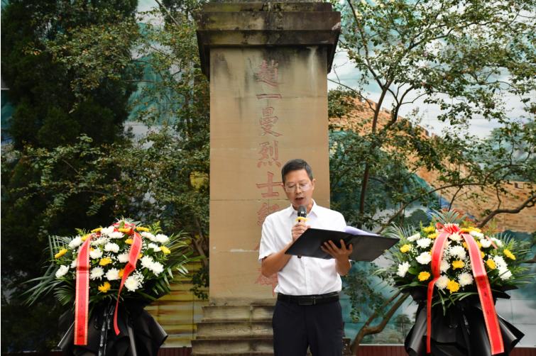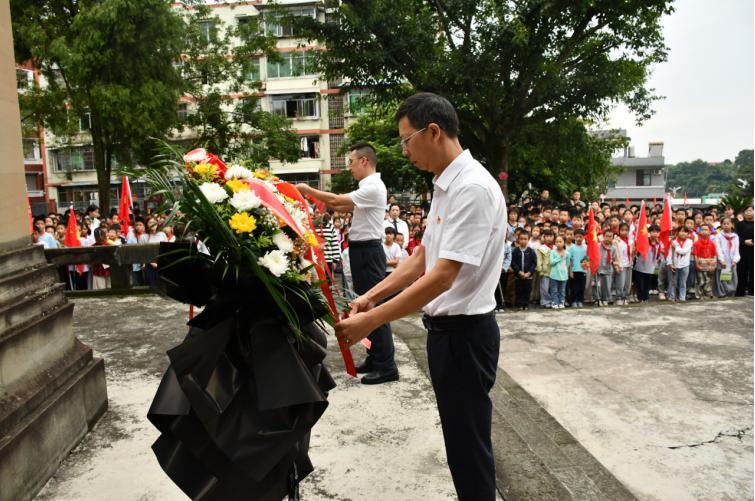 宜宾市一曼小学校党政班子代表全校师生向赵一曼烈士敬献花篮并整理缎带,表达崇高敬意。该校校长毛朝猛讲述了赵一曼烈士的光辉事迹,激励同学们学习英雄的坚定信念与奉献精神。该校学生代表发言,表达了传承先烈精神、争做新时代好少年的决心。在大队辅导员带领下,全体少先队员重温入队誓词,誓言铿锵,信念坚定。