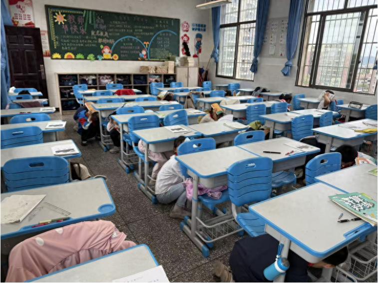 随着警报响起,宜宾市一曼小学校班主任迅速组织学生进行就近应急避震,随后,各区域负责人员迅速组织学生,按照预定路线有序安静撤离。各楼梯口的安全员坚守岗位,引导学生安全撤离,防止拥挤摔倒。全校师生在2分23秒内全部安全到达指定区域,各班迅速整理队伍并清点人数,确保无一人遗漏。展现了极高的安全意识和行动效率。