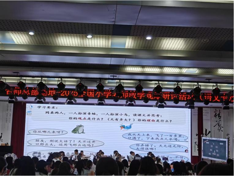 王化英老师执教的《坐井观天》,她以问题为导向,引导学生从“天有多大”展开思辨,借助AI工具创设多维互动情境,激发学生主动思考,敢于质疑。