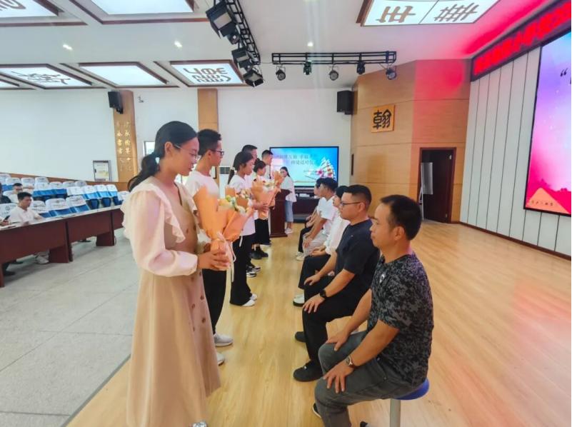 “师者,所以传道授业解惑也。”仪式的核心环节,满是尊师重道的温情。学科师徒结对现场,罗龙、黄伟等13位优秀学科师傅上台,陈华、卢晓娟等13位徒弟怀着崇敬之心有序上前。鞠躬,以庄重姿态许下学习承诺;敬茶,用一杯清茶传递感恩之情;献花,借一束芬芳承载携手成长的期许。师徒合影的瞬间,定格下彼此教育路上的美好约定。紧接着的班主任师徒结对环节同样温馨。曾保枢、詹志强等6位经验丰富的班主任师傅就座,李心培、朱勇衡等6位徒弟依次行拜师礼。相同的仪式,同样的初心,每一个动作都饱含着新教师对成长的渴望,也彰显着老教师对传承的担当。