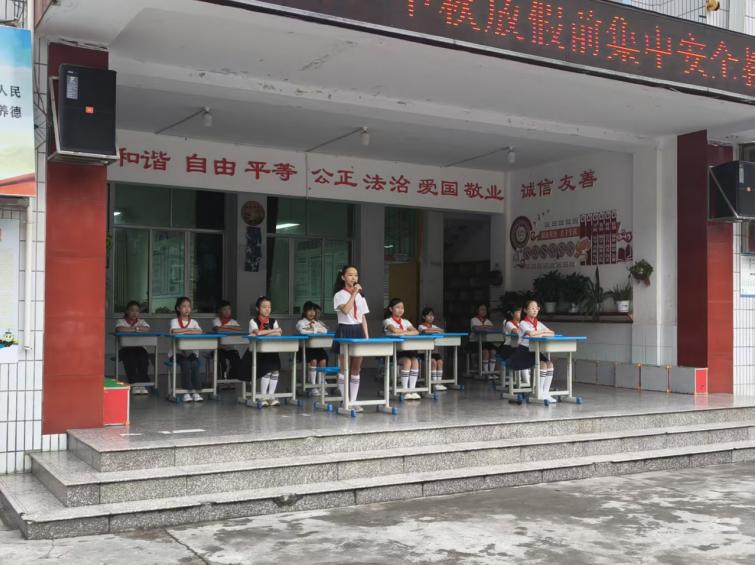 为迎接中秋、国庆双节,厚植学生家国情怀,2025年9月29日升旗仪式上,高县逸夫小学校五年级两个班以“诗、歌、舞”三位一体的形式,呈现了一场主题鲜明的国旗下才艺展示,用青春风采诠释家国同心,赢得全校师生高度赞誉。