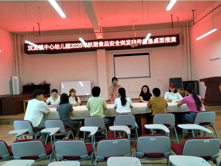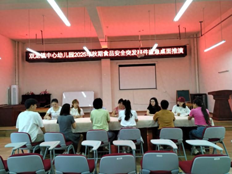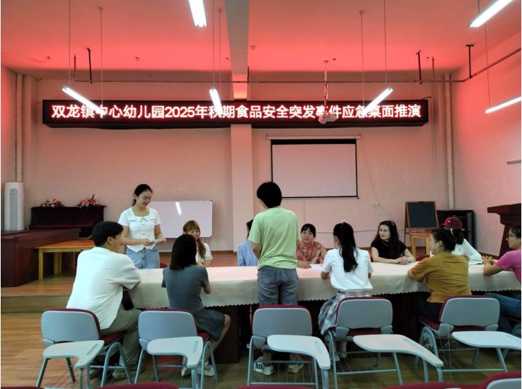 为进一步强化食品安全意识,提升应对突发食品安全事件的快速反应和协同处置能力,2025年10月11日,宜宾市叙州区双龙镇中心幼儿园组织开展了食品安全突发事件应急桌面推演活动。
