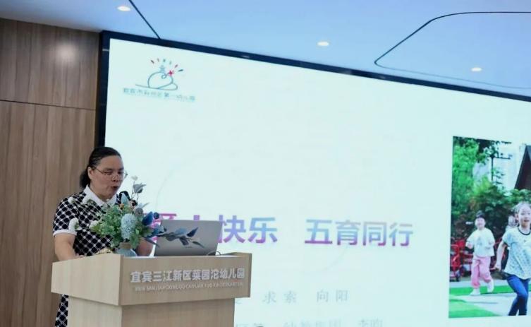 叙州第一幼儿园李昀老师以《爱+快乐,五育同行》进行分享。为体现幼儿园早操与五育教育的融合,概述早操活动形式与育人价值,凸显早操的综合教育意义。结合让教育真正实现立德树人的根本任务。