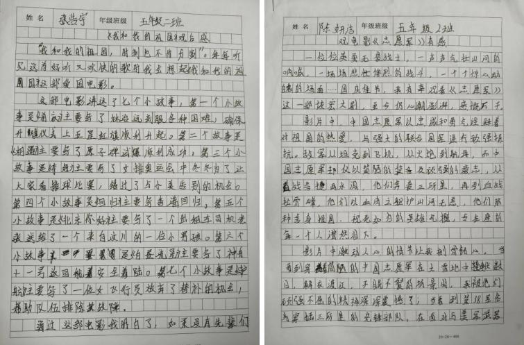 观影后,撰观后感,字里行间流露对英雄人物的敬佩、对祖国发展的自豪,展现出较强的文字表达能力与深刻的情感共鸣。(黄晓燕 来源:高县逸夫小学校)