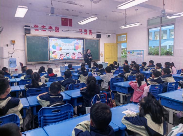 家长以“安全小卫士,护航你我他”为主题,用孩子们易懂的童趣话语言和真实案例,层层拆解实用的“安全保护秘诀”;从认识上下学路上的“安全信号灯”,到传授遇到危险时的“安全小魔法”——主动求助与快速躲避;从引导观察教室、家庭中潜在的风险,到教大家做擅长发现隐患的“安全小侦探”。学生们听得津津有味。