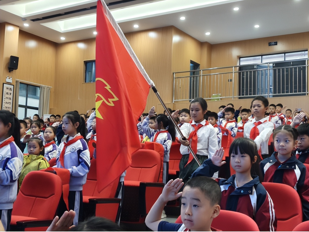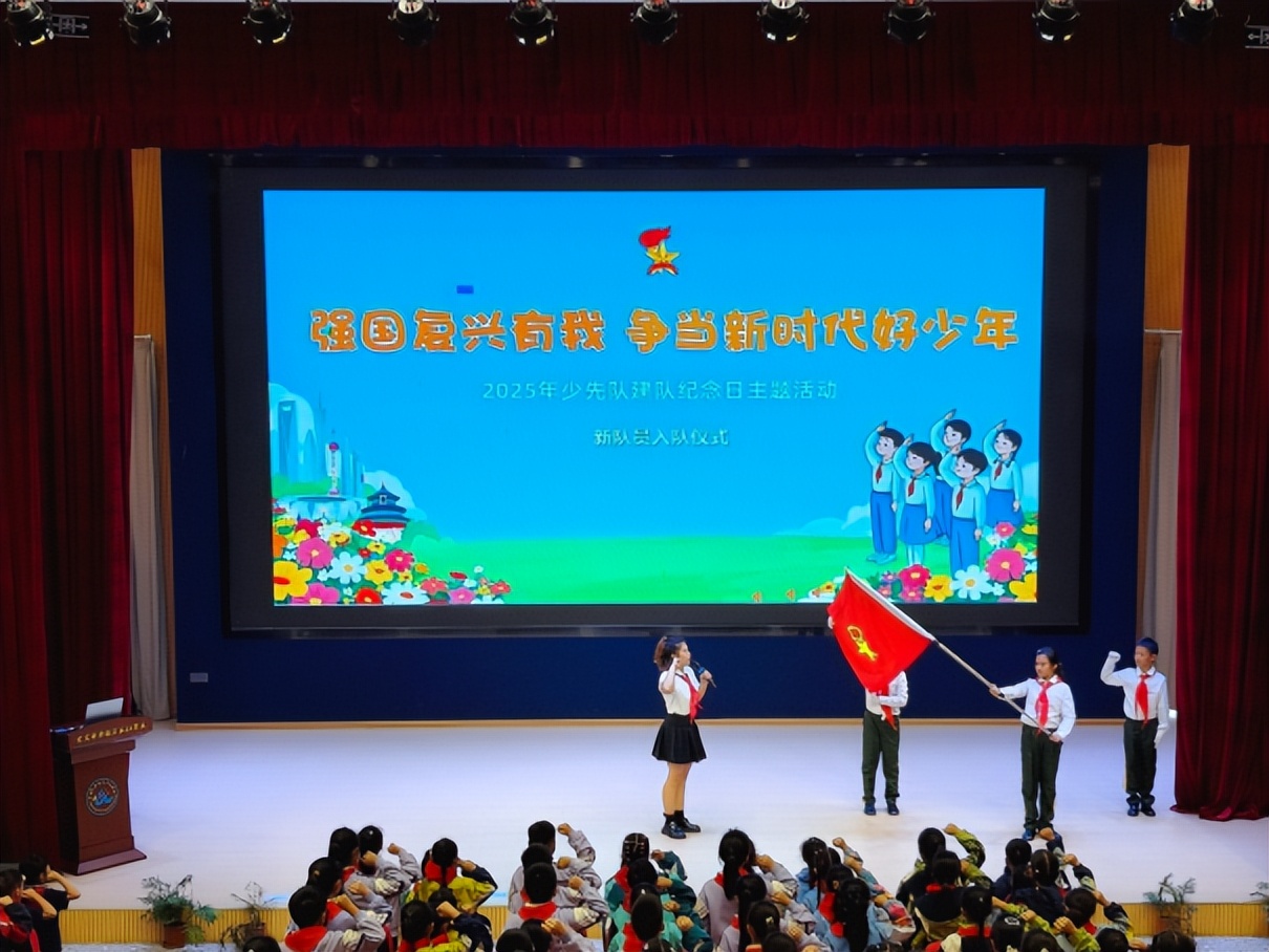 2025年10月13日,宜宾市南溪区长江学校学术报告厅内队旗飘扬、童声嘹亮。以“强国复兴有我 争当新时代好少年”为主题的2025年少先队建队纪念日主题活动暨第二批少先队员入队仪式在此举行。