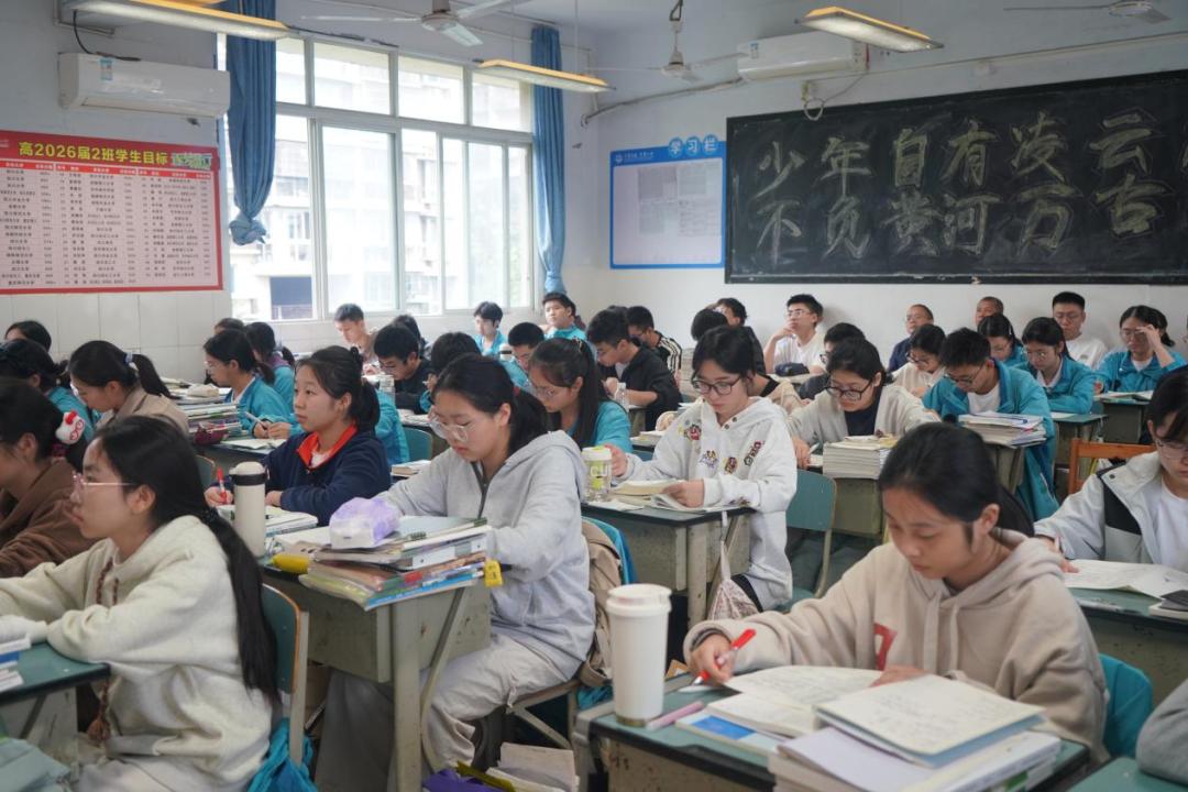 教室里,同学们精神饱满、全神贯注。有的学生认真倾听,目光紧紧跟随老师的讲解;有的学生奋笔疾书,细致记录教学重点;有的学生积极发言,勇敢表达个人见解;有的学生皱眉沉思,沉浸于解题的思维乐趣。课堂内弥漫着浓厚的学习氛围,充分彰显了我校学子积极向上的精神风貌与良好的学习状态。