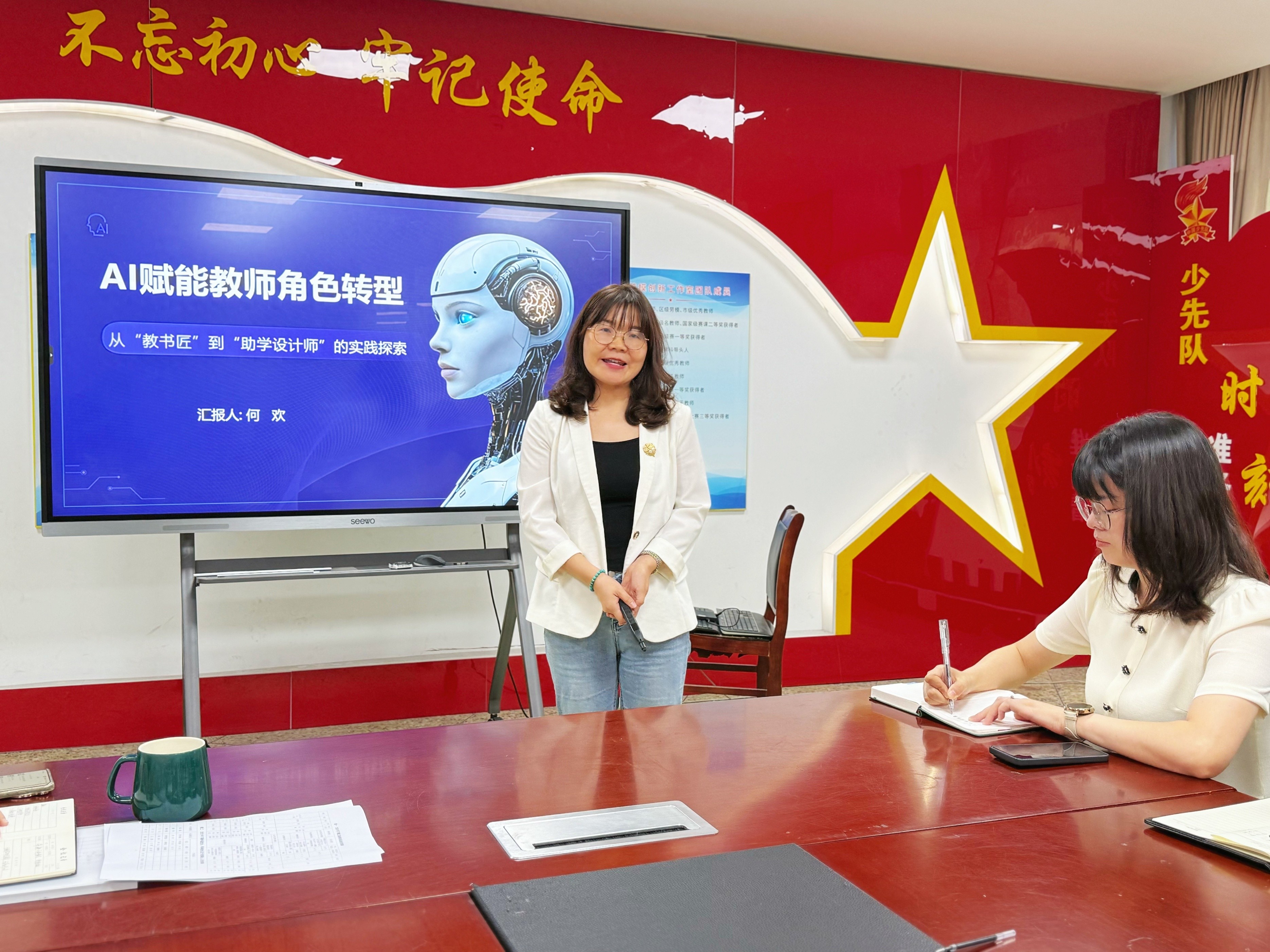 活动伊始,刘利老师以“于细微处见真章,于无声处听心音”为主题交流电子科大跟岗学习的收获;何欢老师分享了“AI赋能教师角色转型”的前沿观点,提出教师应从“教书匠”转向“助学设计师”,以实现“让AI教书,让老师育人”的协同增效。郑丽主任则从教学细节入手,强调了课堂指令复述、利用希沃平台抽查作业等具体方法,体现精细化教学管理。