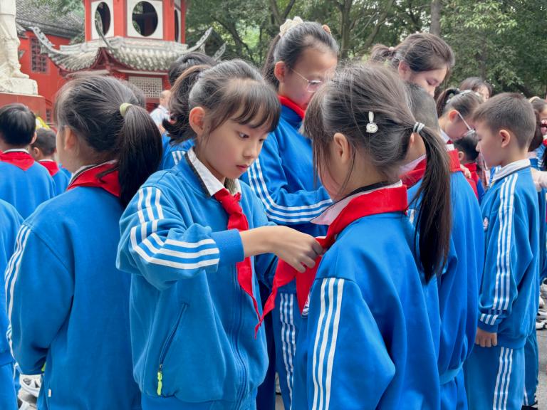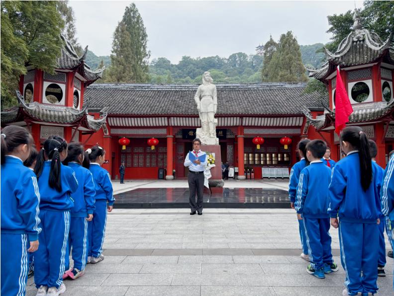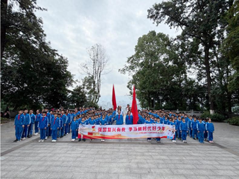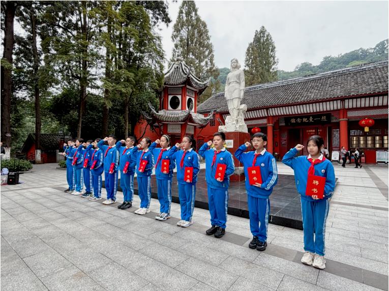 红旗猎猎,歌声嘹亮。在这个承载着历史荣光与民族自豪的特殊年份,我们迎来了中国人民抗日战争暨世界反法西斯战争胜利80周年、中华人民共和国成立76周年、中国少年先锋队建队76周年。2025年10月14日,宜宾市叙州区黄冈学校二年级全体师生与五(2)班的同学们齐聚翠屏山赵一曼纪念馆,举行了少先队入队仪式。