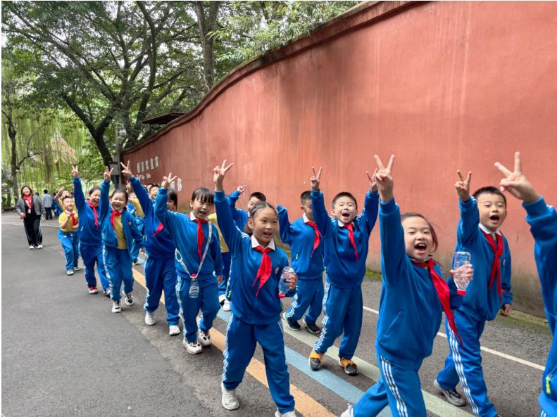 离开纪念馆,叙州区黄冈学校师生们沿翠屏山蜿蜒山路缓步前行。秋日阳光透过枝叶洒落斑驳光影,微风轻拂带来阵阵清香。同学们边走边交流参观感受,心中的敬意与使命感愈发坚定,让红色精神在行走中悄然生根。