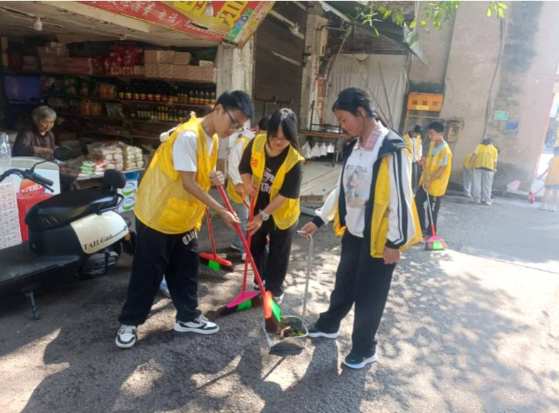当天中午,江安县淯江初级中学校学生志愿者们身着整齐的志愿服,带着清洁工具,精神饱满地到达下长镇长兴社区。一到现场,大家便迅速投入到清扫工作中。有的同学拿着扫帚,认真清扫街道上的落叶和杂物;有的同学则用垃圾袋收集垃圾,不放过任何一个角落。尽管天气有些炎热,但同学们的热情丝毫未减,大家分工明确、配合默契,干得热火朝天。经过几个小时的努力,社区街道变得干净整洁,焕然一新。居民们看到这一幕,纷纷竖起大拇指,对学生们的表现给予了高度好评。