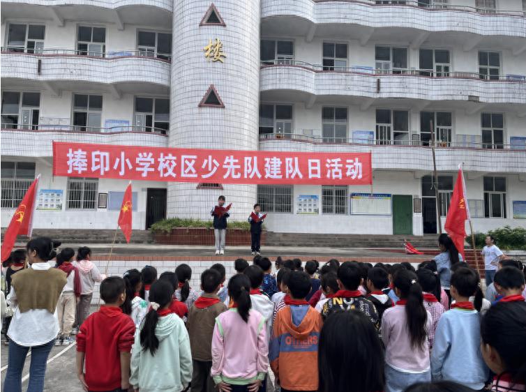 为引导少年儿童继承和发扬中国少年先锋队的光荣传统,增强少先队员的光荣感和组织归属感,2025年10月16日,宜宾市叙州区双龙学校捧印小学校区举行了“新少先队员入队仪式。