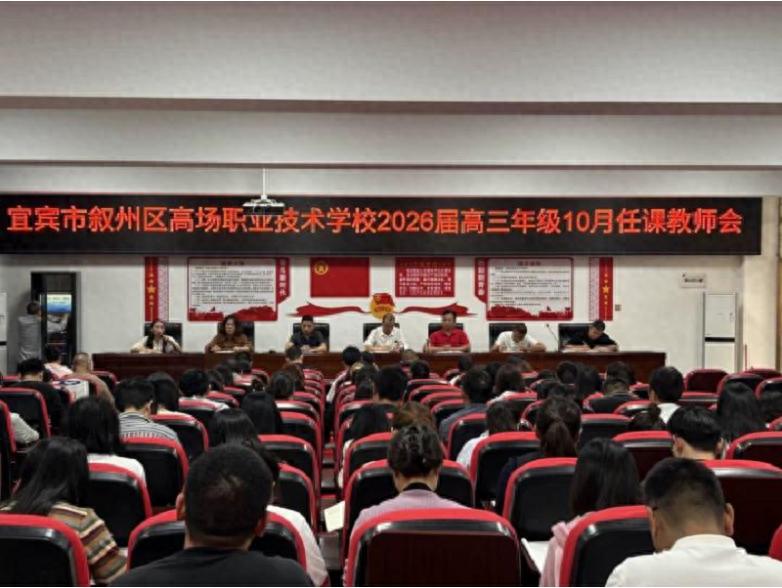10月14日,宜宾市叙州区高场职业技术学校举行了2026届高三年级教10月任课教师会。学校全体行政、专业学科组长、备课组长及全体高三任课教师参加会议,会议由学校党总支书记胡承雄主持。