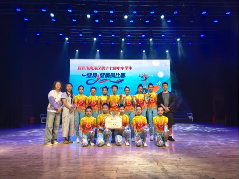 2025年10月17日,在宜宾市南溪区第十七届中小学生健美操比赛中,南溪区桂溪初级中学校健美操代表队凭借精湛的技艺、完美的配合和昂扬的斗志,在众多参赛队伍中脱颖而出,勇夺大赛第一名,荣获一等奖,为该校赢得了崇高的荣誉!