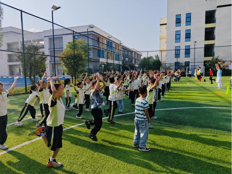 为丰富校园体育教育形式,提升学生身体素质,2025年10月15日下午,宜宾职业技术学院人文与旅游学院的教师团队走进南溪区福临小学校,为三年级2班和三年级8班的孩子们带来了一堂青少年体适能训练课。