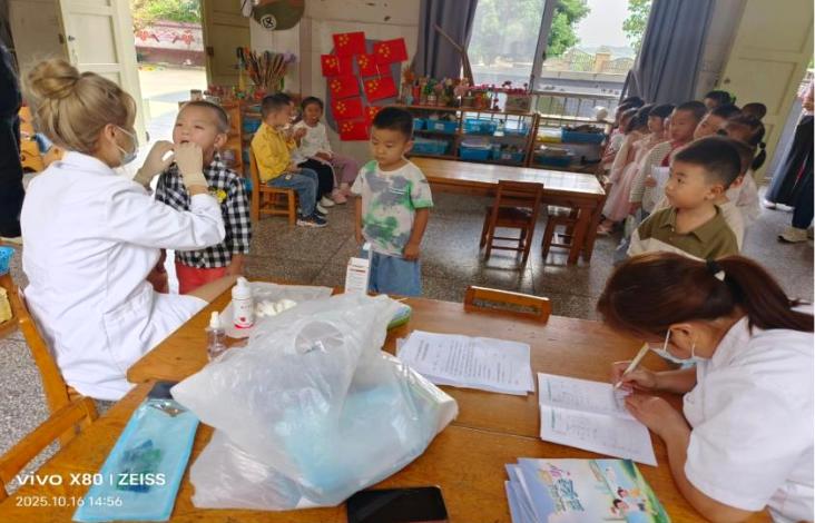 同时,为有效预防幼儿龋齿发生,降低儿童牙齿患病率,卫生院的牙科医生为孩子们提供了专业的牙齿涂氟服务。医生在涂氟过程中,向孩子们简单讲解了保护牙齿的小知识,鼓励他们养成早晚刷牙、饭后漱口的好习惯,让健康的牙齿陪伴成长。