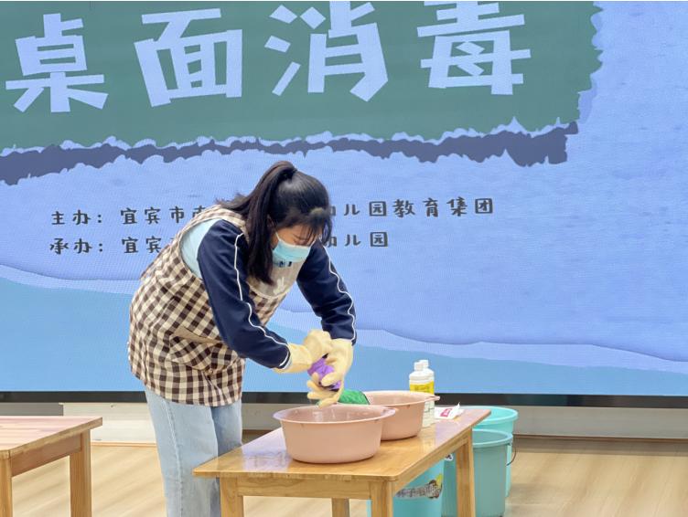 比赛现场,参赛保育员们以饱满的热情投入竞技,每一个操作步骤都彰显严谨态度与扎实功底。准备阶段,大家自觉穿围裙、洗双手,将专用消毒毛巾按标识摆放整齐;操作过程中,配置消毒液时精准把控用量,擦拭桌面时无死角覆盖,整理床铺时手指压实边角,3分钟内高效完成全套规范动作;结束后,及时清洗消毒毛巾、清理工具并物归原处,全程流程顺畅、动作娴熟。