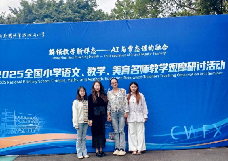 为响应国家教育数字化战略行动,推动人工智能与美育教学的深度融合,2025年10月18日、19日,宜宾市南溪区福临小学校美育学科教师代表王美瑶、严茂文、赵钦、李咏易赴成都参与了“解锁教学新样态——AI与常态课的融合”教学观摩研讨活动。