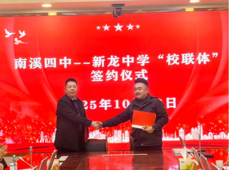 为推进区域教育优质均衡发展,2025年10月22日,甘孜州新龙县中学(教师进修校)与宜宾市南溪区第四中学校2025-2028年校联体工作协议签约仪式顺利完成。