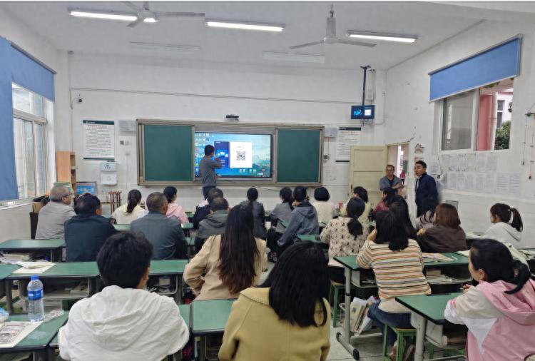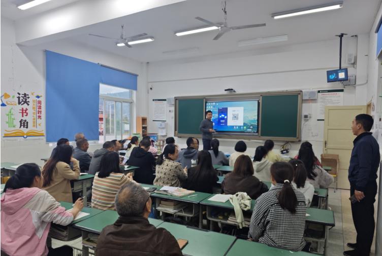 为加强新安镇九年一贯制学校“网链共享计划”应用,共享省内优质教学数字资源,提升全体教师在这一领域的运用能力,提高教育教学水平,更好的为新安镇教育服务,2025年10月22日下午,屏山县电教教仪站工作人员在新安镇九年一贯制学校A校区6年级1班教室组织召开了“网链共享计划”培训会,参加培训的人员有:“网链共享计划”班级的任课教师和学校网络技术团队,以及自愿参加学习的教师。
