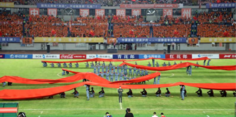 走进泸州奥林匹克体育公园,巨幅“四渡赤水”主题展板矗立于赛场入口,红色历史与足球激情在此交汇。赛前,由歌手、老年合唱团及学生组成的161人演出团队,共同演绎《四渡赤水出奇兵》。激昂的旋律、铿锵的舞步,再现了红军长征途中那段荡气回肠的峥嵘岁月。现场观众纷纷举起手机记录,红色基因在体育盛宴中悄然传承。