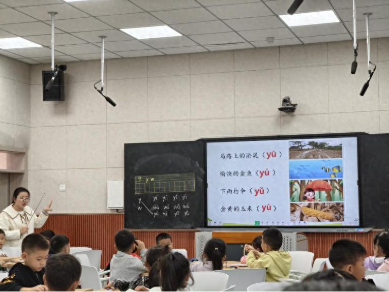 刘梅老师执教的《Y W》:深谙低段学生记忆特点,打造“口诀+生活”双助力课堂。一方面自编口诀,帮助学生快速记住字母外形与发音;另一方面联系生活实际,让学生从“阿姨”“屋顶”等日常词汇中感知拼音用法,实现知识与生活的无缝衔接。