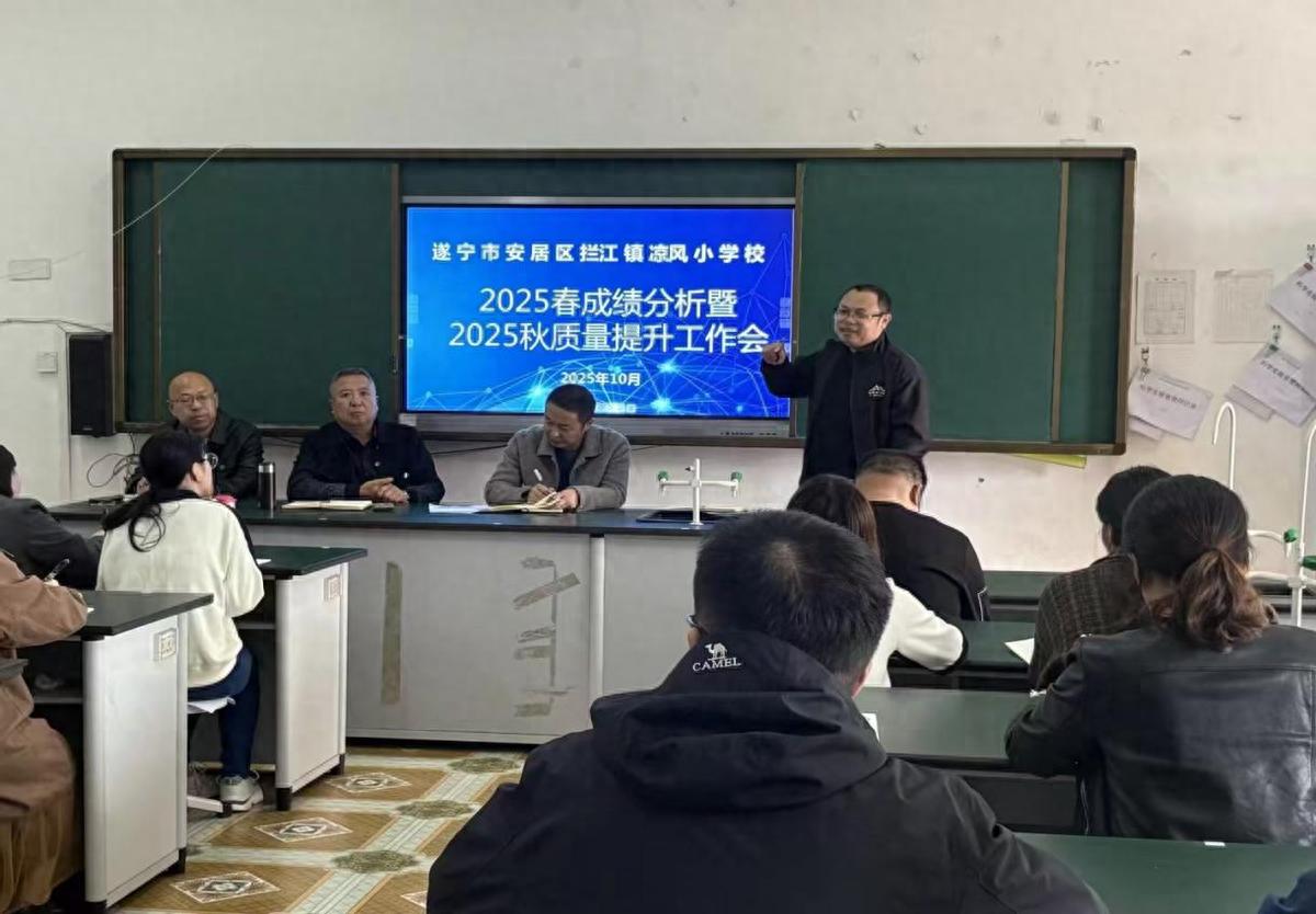 为全面复盘上学期教学成效,精准定位教学薄弱环节,明确后续教学改进方向,近日,遂宁市安居区拦江镇凉风小学校召开2025春成绩分析暨2025秋质量提升工作会。校长刘祚义、副校长刘勤学、教导主任曾先及各年级、学科教师参会,共同为提升教学质量出谋划策。