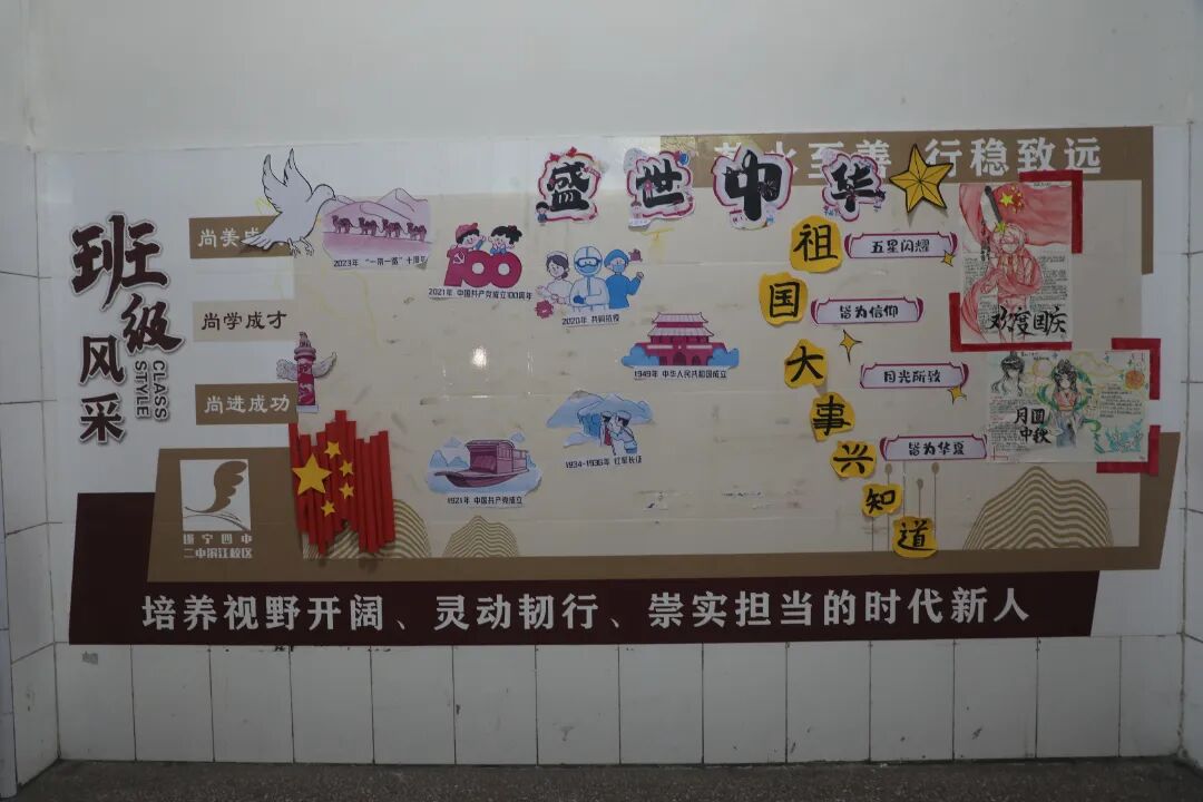 此次班级文化墙布置活动,不仅美化了校园环境,更是一次深刻的班级文化建设和爱国主义教育实践。一墙一世界,一班一风采。这些充满创意与温度的文化墙,已成为遂宁四中(二中滨江校区)一道亮丽的风景,激励着全体学子在充满文化气息的沃土上,怀揣梦想,茁壮成长。(来源:遂宁四中 图/刘兆蓉 文/李 敏)