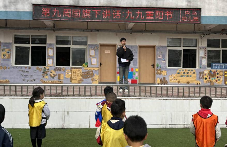 在国旗下讲话中,梁宗老师用生动浅显的语言,为孩子们讲述了重阳节的由来和习俗,告诉他们重阳节也是“老人节”,是一个属于爷爷奶奶、外公外婆的节日,并向全体小朋友发出了温暖的倡议: