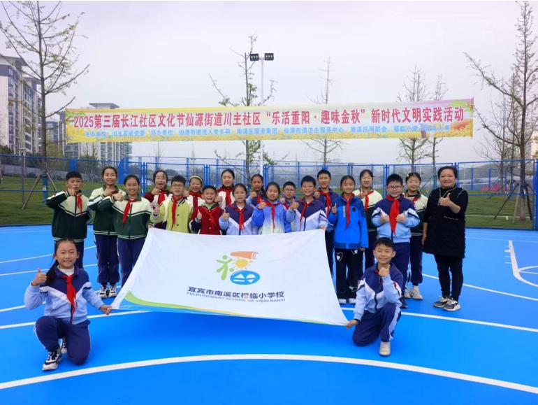 金秋送爽,丹桂飘香,在重阳佳节来临之际,为传承中华民族敬老爱老的传统美德,引导少先队员践行新时代文明风尚,10月28日,宜宾市南溪区福临小学校组织少先队大队干部及少先队员代表,走进仙源街道川主社区桂溪湖公园篮球场,参与了2025第三届长江社区文化节仙源街道川主社区“乐活重阳・趣味金秋”新时代文明实践活动,与社区老人们共度一段温馨难忘的时光。