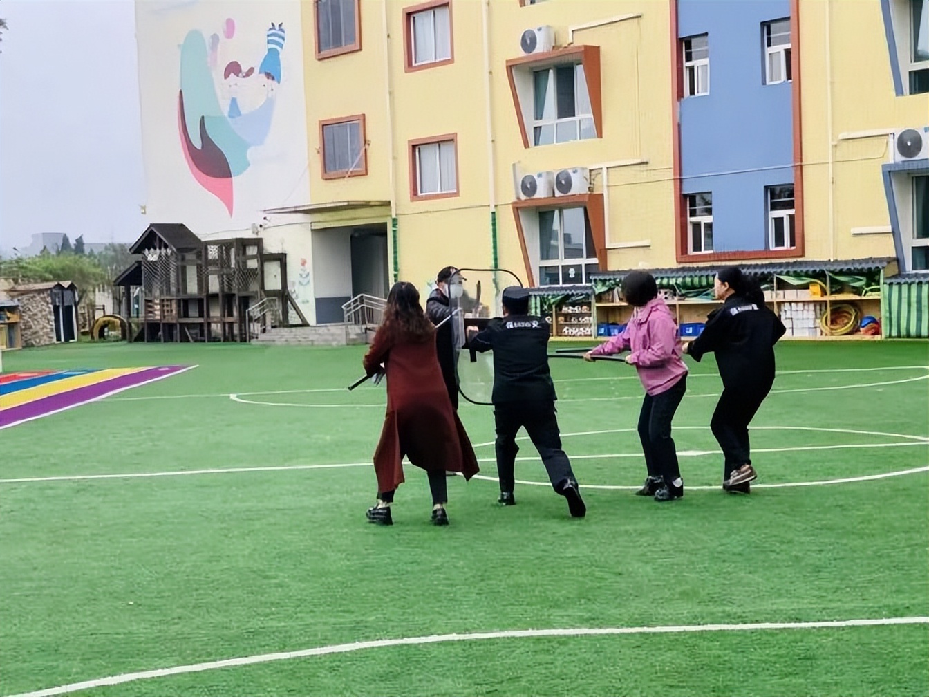 为了加强全园教职员工对突发事件的防范意识,提高教职工合理处理、自护自救及保护幼儿有效逃生避险的能力,最大限度的减少人员伤害,确保幼儿园内部的教职工和幼儿的人身安全,遂宁市安居二幼于10月27日上午组织开展了反恐防暴演练活动。