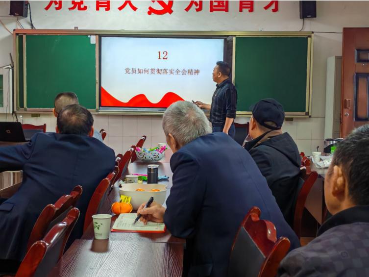 为深入学习贯彻党的二十届四中全会精神和战略部署,结合学校实际情况,推动学校高质量发展。2025年10月29日,宜宾市南溪区大观镇大坪学校党支部书记陈勇带领全体党员教师和退休教师学习了党的二十届四中全会精神。