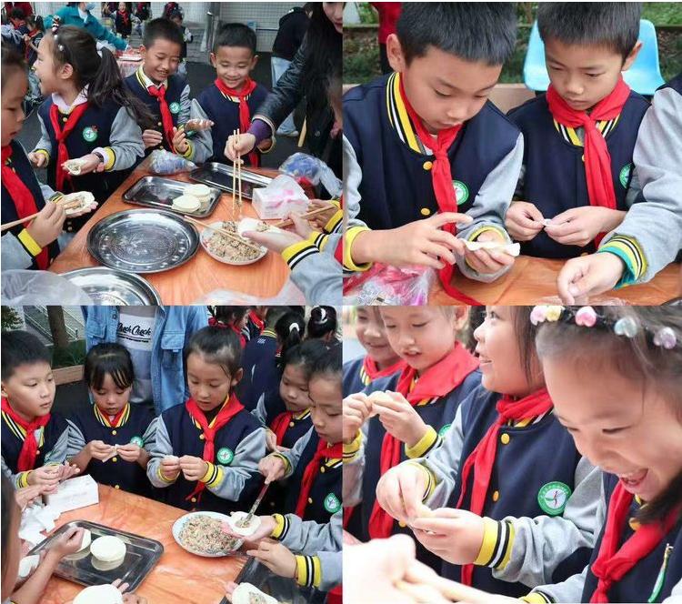 包饺子环节里,孩子们瞬间变身“厨房小能手”。他们围在桌前,拿起饺子皮,笨拙却认真地放馅、捏边,包出的饺子形态各异,有的像小月牙,有的像胖元宝,十分可爱。一旁的爷爷们看在眼里,纷纷竖起大拇指称赞:“这饺子包得比我们自己包的还好看!”鼻尖沾着面粉的“小花猫” 们,与白发苍苍的 “指导老师” 们默契配合,其乐融融。不多时,数百个造型可爱的饺子便整齐地摆满了托盘,满满的都是温馨与爱意。