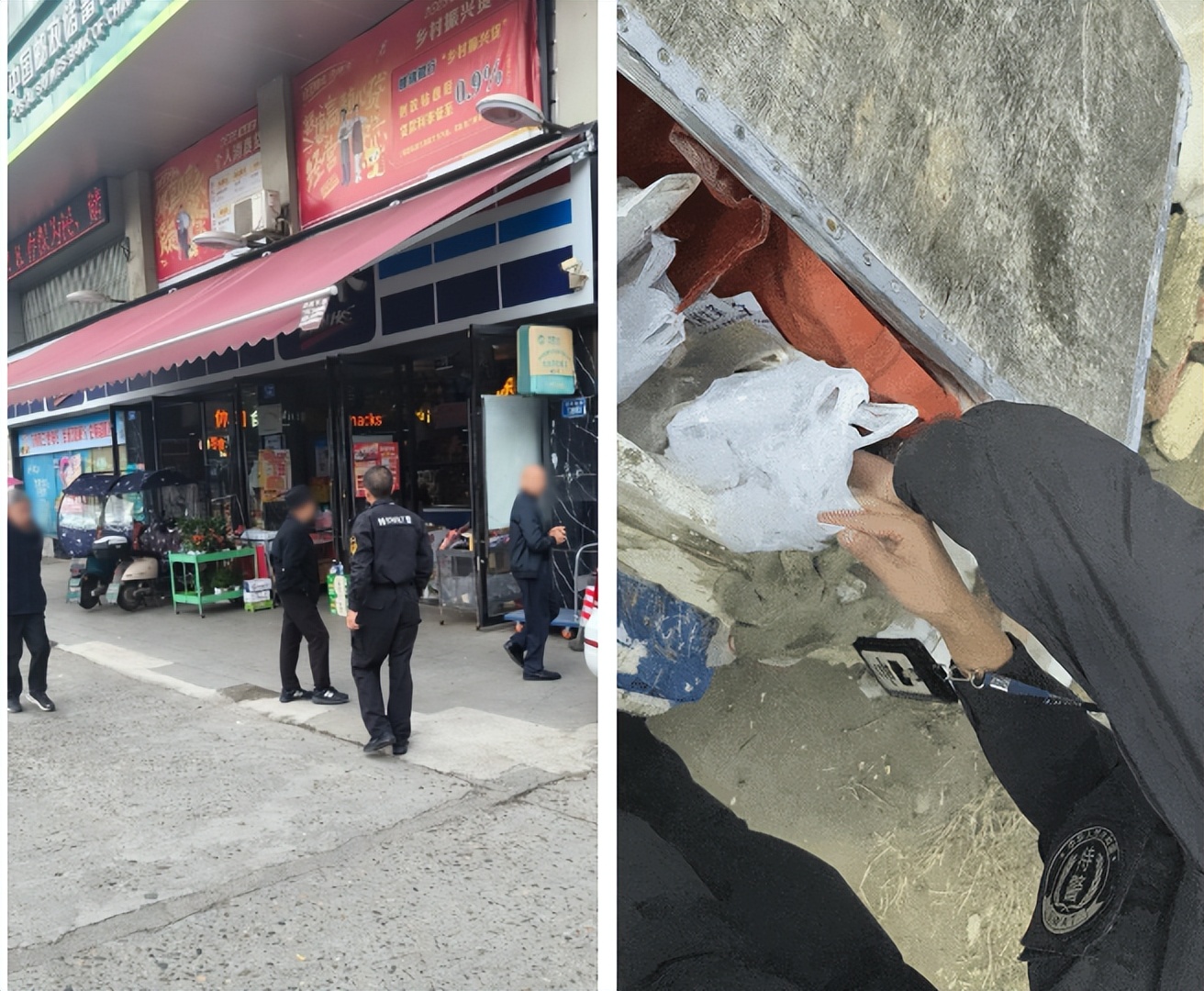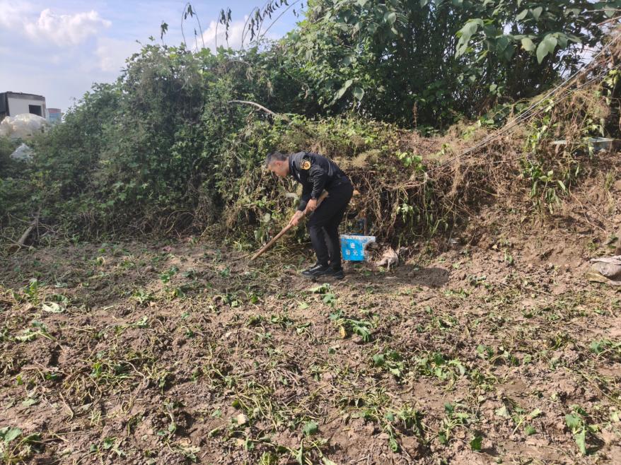 随后,民警陪同朱婆婆老两口返回菜地,从下车到菜地这段路程开展地毯式搜索。面对杂草丛生、堆肥散发异味的环境,队员们毫不退缩,细致翻查每一片可能区域。