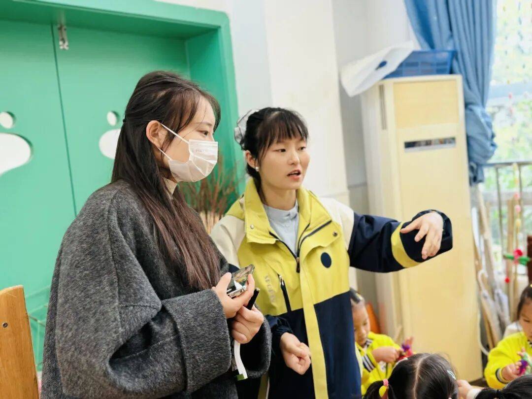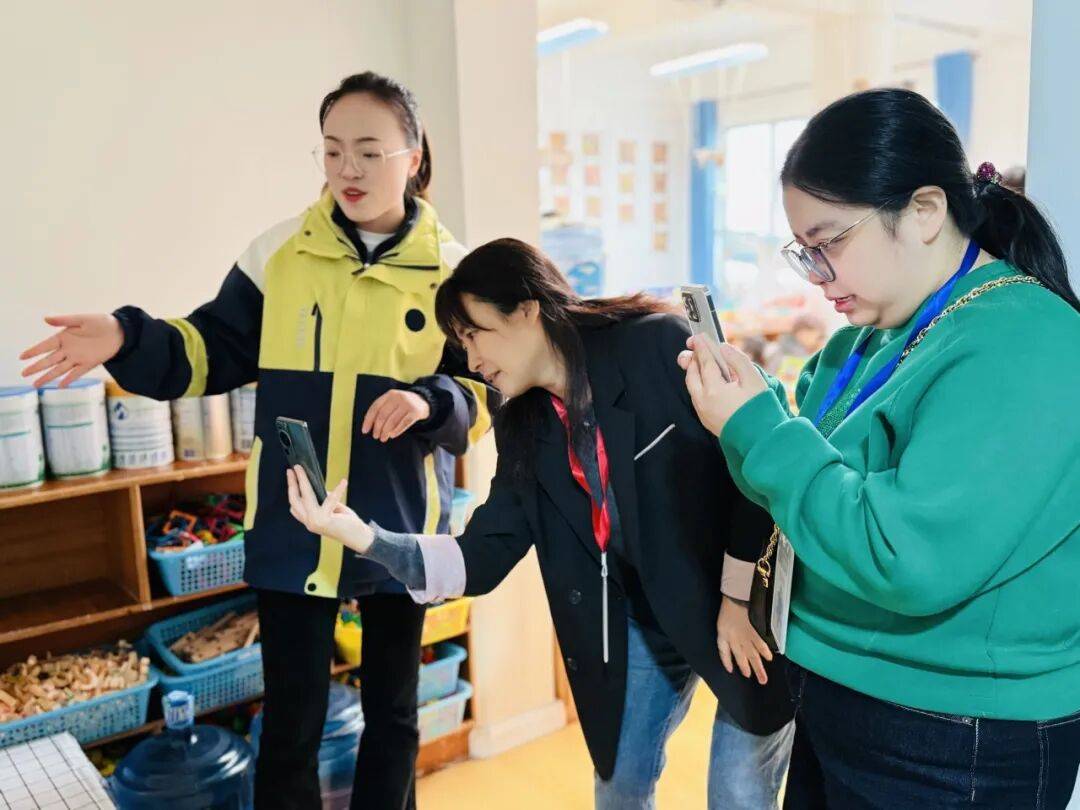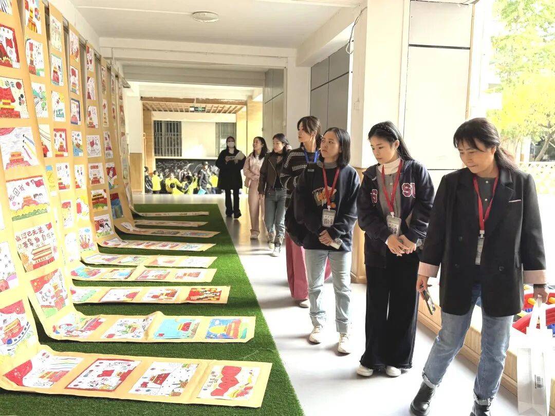 参训教师在张丽老师的引导下观摩校园环境。从主题墙饰到自然角布置,从游戏材料投放至幼儿作品展示,每一处细节都体现“让每个儿童享受成长之乐”的教育理念,引发观摩教师的频频驻足与记录。