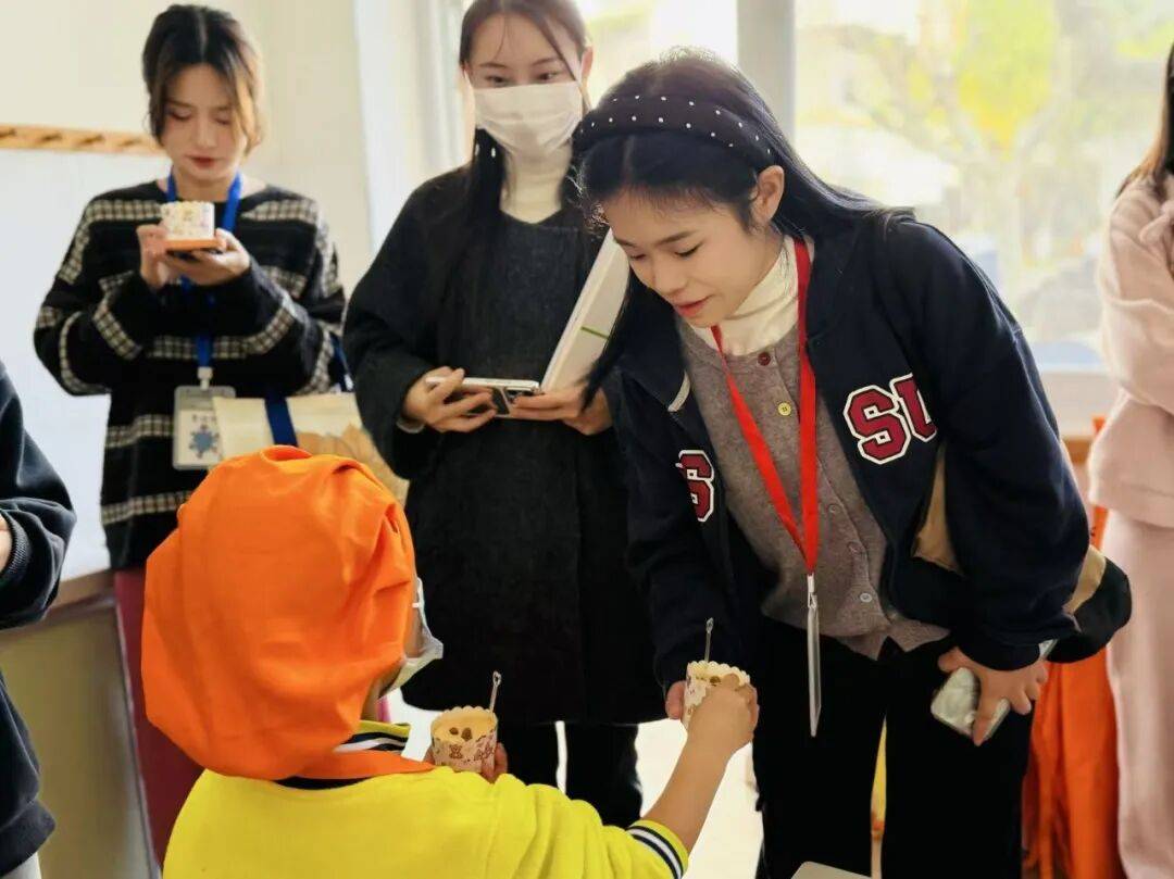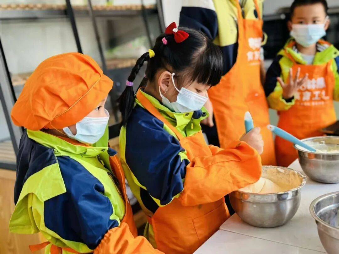 美食工坊中,孩子们亲手制作纸杯蛋糕,从打蛋、搅拌到装杯,每一个步骤都认真专注。