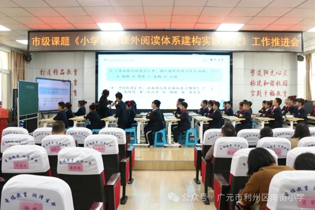 广元市2024年度教育科研立项课题《核心素养背景下的小学区域课外阅读体系建构实践研究》第二阶段研究工作推进会由南街小学教育集团秘书长、南街小学副校长杨方和主持。