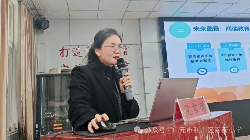 樊文忠名校长工作室成员,则天路小学校长黄梅以《书香润泽生命,阅读提升素养》为题,分享校园阅读环境打造、阅读活动创新做法,展现了书香校园的魅力。