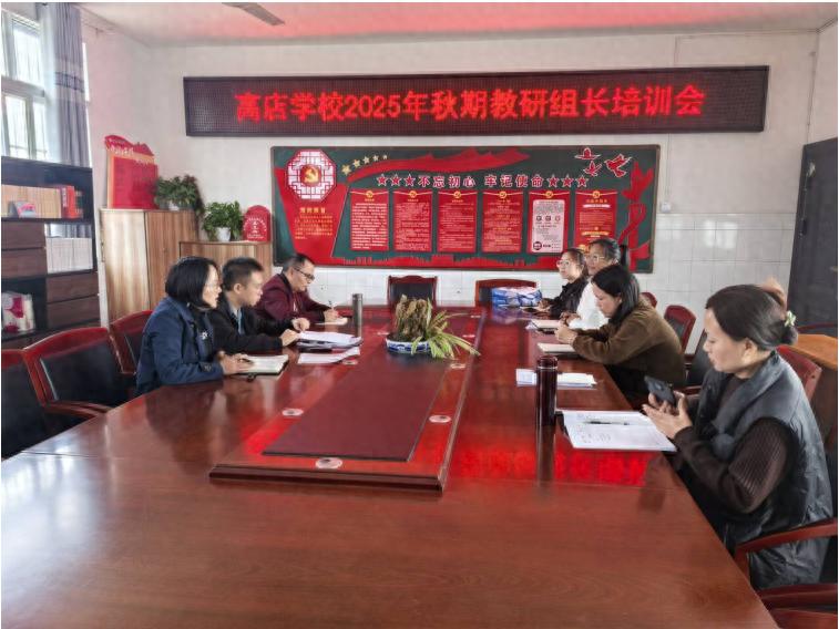 为深入贯彻落实新课程标准精神,部署新班子提出的教学教研重点任务,全面提升学校中小学教育教学质量,2025年10月28日,宜宾三江新区高店学校在该校教务处组织下,召开了中小学教研组长培训会。会议由学校教务处主任牟小燕主持,学校分管校长龙雪江、教务处副主任刘盛强以及中小学的五位教研组长,共计8人参加了会议。