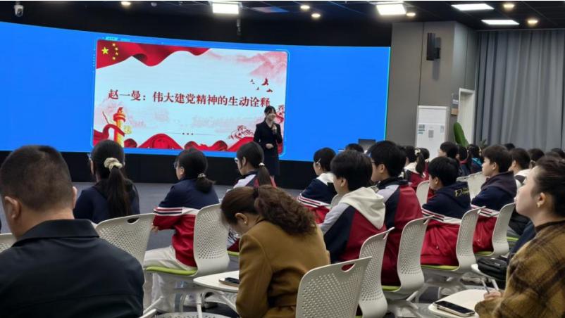 本次课堂以“赵一曼:伟大建党精神的生动诠释”为主题,由宜宾职业技术学院思政课教师主讲。课堂上,教师深情讲述了抗日民族英雄赵一曼的感人事迹,重现了她英勇不屈的革命精神与母爱情怀,特别是她留给孩子的遗书,字字泣血、句句千钧,深深打动了在场的每一位师生。课程还结合新时代楷模事迹,系统阐释了伟大建党精神的深刻内涵,引导同学们从历史中汲取精神力量,坚定理想信念。