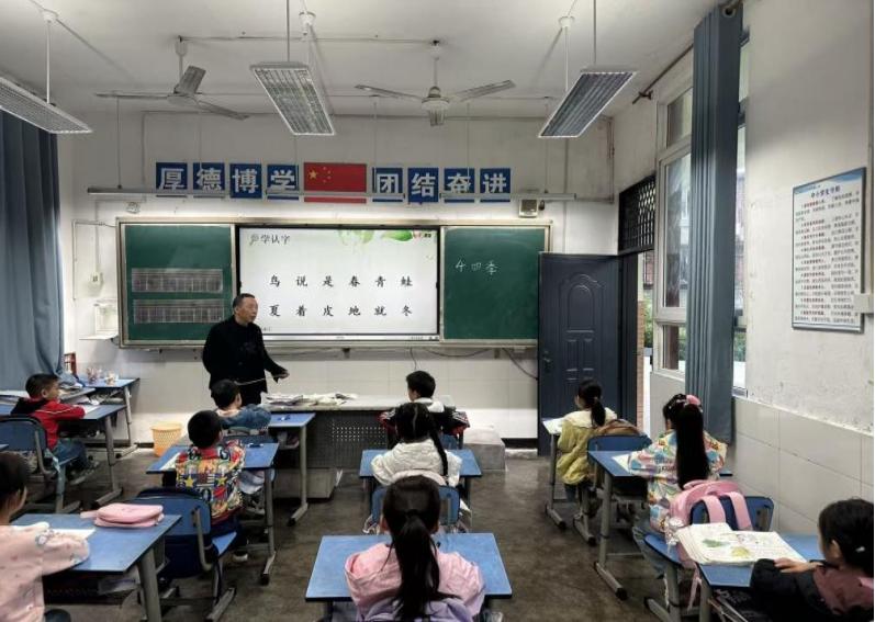 课堂伊始,三江新区顺南学校教师播放动画短片《四季的颜色》,生动呈现“春花开、夏蝉鸣、秋叶落、冬雪飘”的优美画面,配以轻快音乐,营造出浓厚的季节氛围。罗学奎老师适时提问:“孩子们,你们最喜欢哪个季节?为什么?”引导学生结合生活经验畅所欲言。学生踊跃回应:“春天和妈妈去公园看花”“冬天和小伙伴堆雪人”……从真实体验出发,迅速拉近了与课文的情感距离。