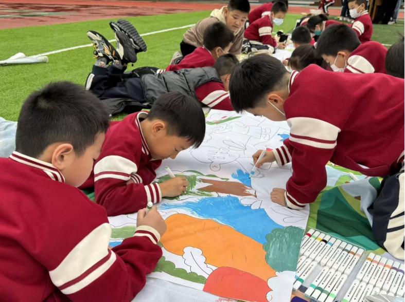2025年11月6日下午,宜宾市南溪区仙源小学校的操场上色彩飞扬。该校三年级全体师生齐聚一堂,开展了一场别开生面的“我和秋风握握手”同画一幅画主题活动,用画笔与秋天进行了一场美丽的对话。