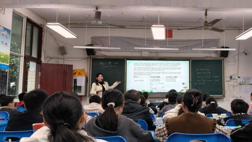 谭小红老师在七年级的英语课上执教《三单元B部分阅读》,课堂气氛活跃,师生互动热烈。