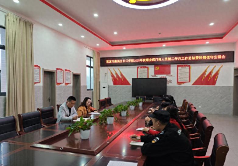 会上,南溪区长江学校分管安全副校长聂秋来总结了第二学月安全工作成效,明确了后期安保重点任务,对秋假值班值守工作进行了细致布置。
